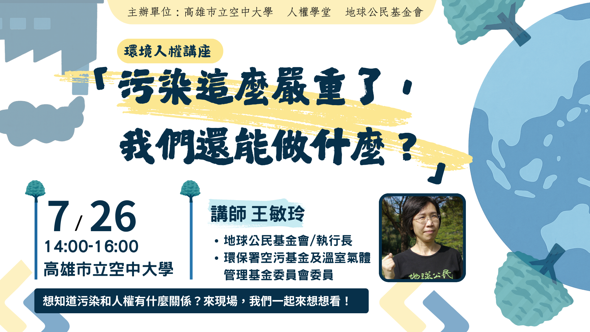 (一)講座名稱:「汙染這麼嚴重了,我們還能做什麼?」